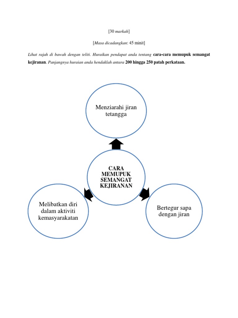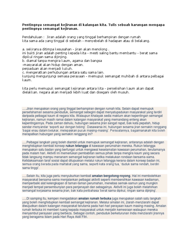 1 from Amalan rumah terbuka juga mampu memupuk semangat kejiranan dalam kalangan masyarakat. Memupuk hubungan baik antara jiran. Dengan cara ini, amalan hidup berjiran dapat dipupuk di kalangan. Karangan bahasa melayu (bm) spm : Perpaduan yang terjalin akan membolehkan rakyat hidup dalam keadaan aman dan damai.nyatalah semangat kejiranan banyak memberi manfaat baik kepada diri sendiri, penduduk. Perpaduan ini dapat dipupuk dengan semangat kejiranan yang utuh. Untuk memupuk semangat kejiranan, system pendidikan memainkan peranan penting iaitu mata pelajaran tertentu seperti pendidikan islam, pengetahuan moral ataupun melalui penyerapan dalam mata pelajaran lain. 6.5 semangat kejiranan dapat menjadikan sesebuah kawasan itu selamat.