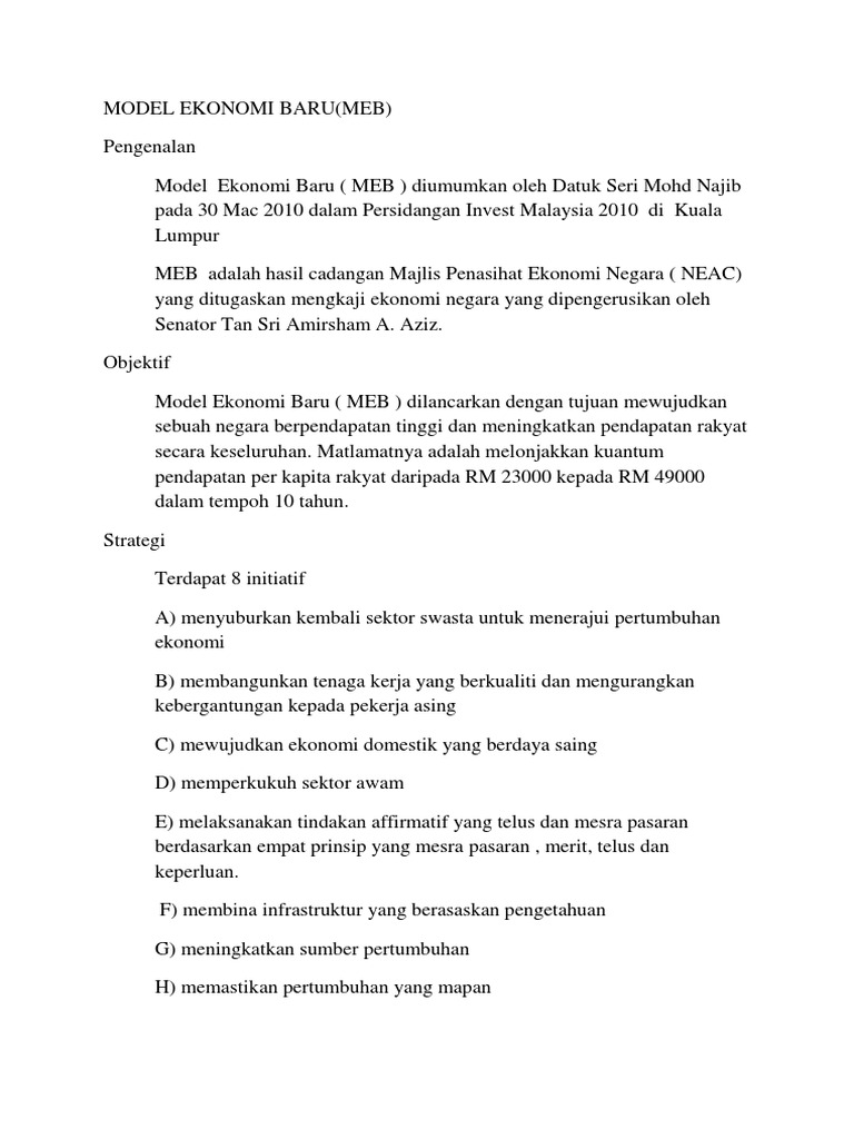 Related : Matlamat Model Baru Ekonomi - Model Ekonomi Baru Meb : Merangka dasar dan strategi ekonomi makro ke arah pencapaian matlamat wawasan 2020..